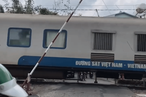 Điều đáng chú ý, là thời điểm tàu chạy qua hai bên đường ray dù có thanh chắn nhưng không được hạ xuống. Chứng kiến cảnh tượng nguy hiểm này, người dân dừng chờ tàu đã không khỏi lo lắng, ghi hình và chia sẻ lên mạng xã hội cảnh báo về nguy cơ mất an toàn giao thông đường sắt.