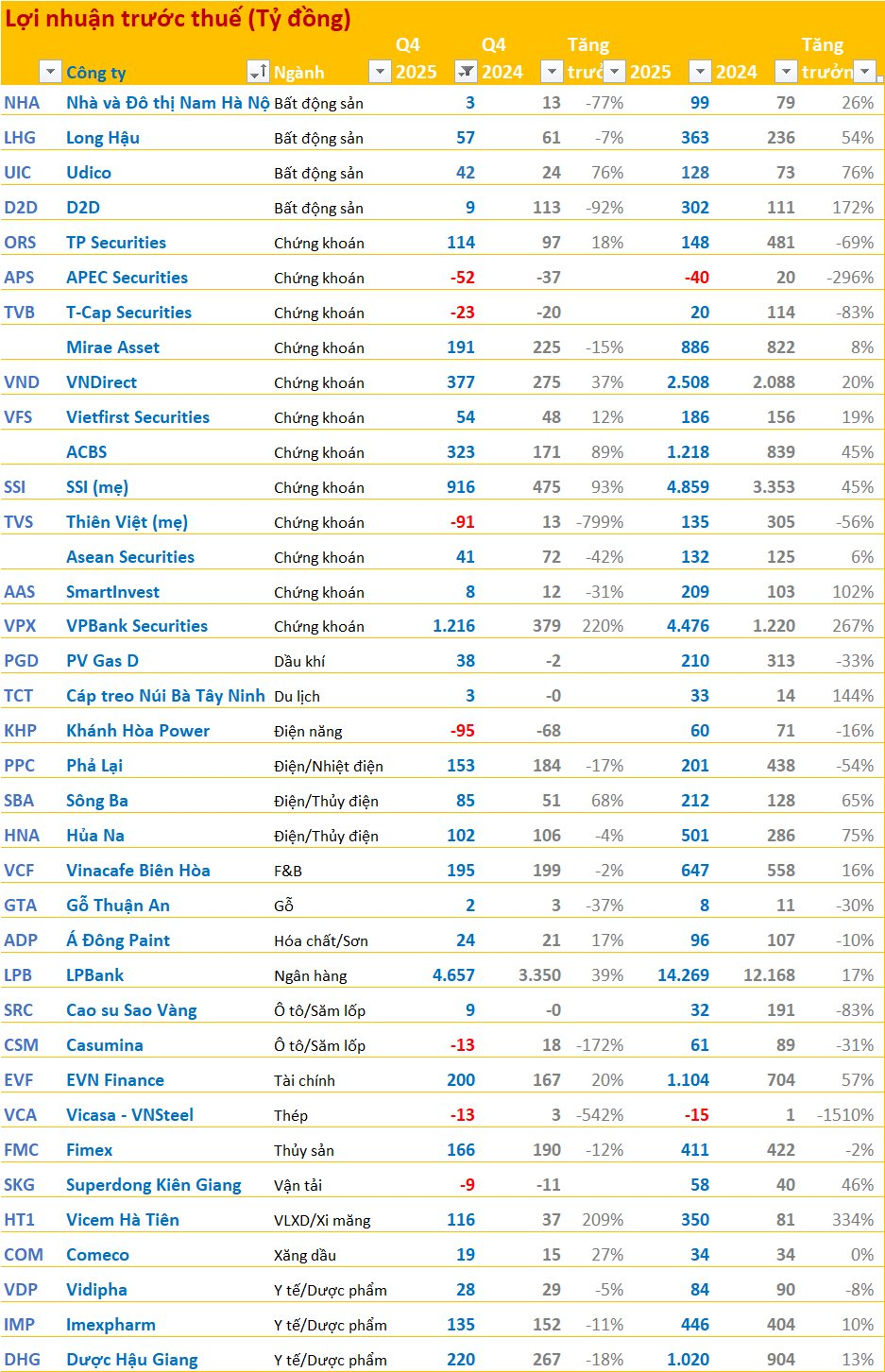 Các doanh nghiệp đã công bố BCTC quý 4/2025 tính đến ngày 21/1: