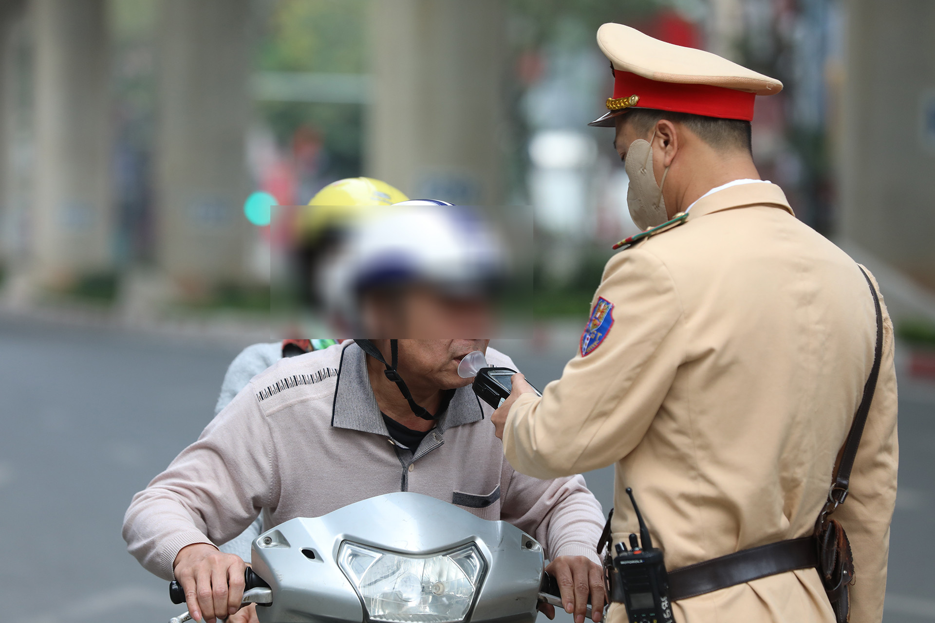 Tại chốt kiểm tra của Đội CSGT đường bộ số 6 (Phòng CSGT Công an TP Hà Nội) trên đường Hoàng Quốc Việt (phường Nghĩa Đô), lực lượng chức năng phát hiện cụ ông Đ.C.V. (SN 1946, trú Hà Nội) vi phạm nồng độ cồn, điều khiển xe máy loạng choạng.