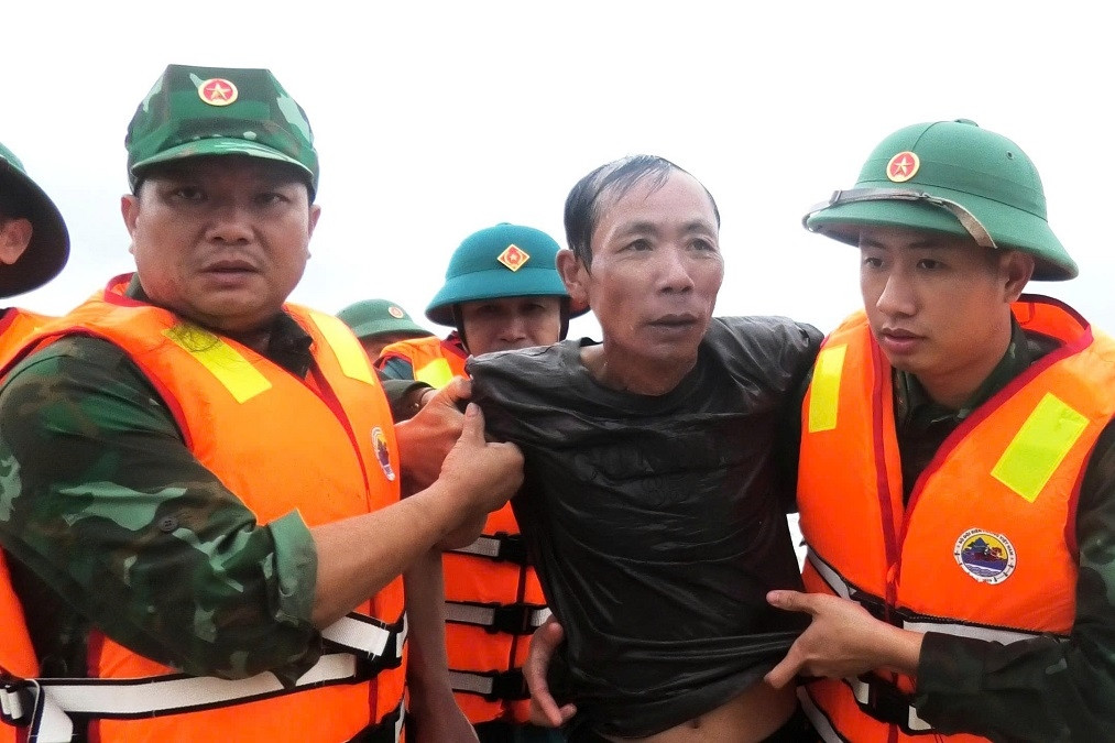Lúc này, thuyền viên phát tín hiệu cấp cứu tới Bộ đội Biên phòng và nhảy xuống biển.