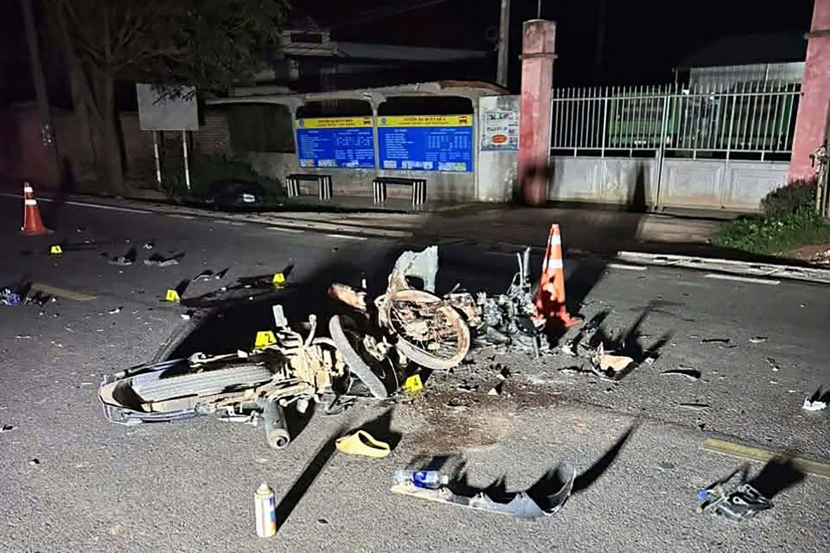 Cú va chạm mạnh khiến xe máy ngã xuống đường, xe đầu kéo quay ngang chắn ngang đường. Hậu quả, cả hai người đi trên xe máy tử vong tại chỗ.